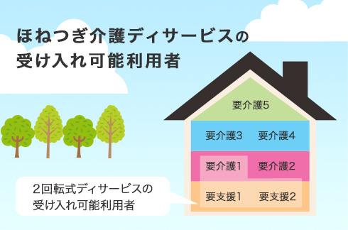 それに対し、ほねつぎ介護デイサービスは機能訓練を行いながら要介護4・5までの受け入れが可能なので、利用者の幅を広げました。