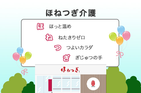 ほねつぎ介護では身体を温めることをコンセプトにしています。活用できる知識・技術を備えたスタッフが、ご利用者様をサポートします。