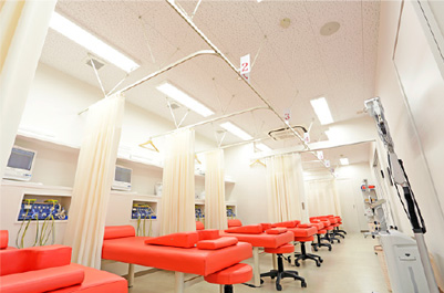安全性と適度なプライバシーを保てるように、施術ベッドはそれぞれがカーテンで仕切られています。